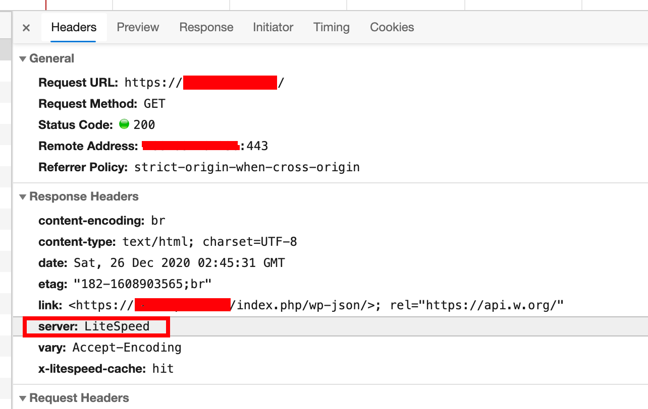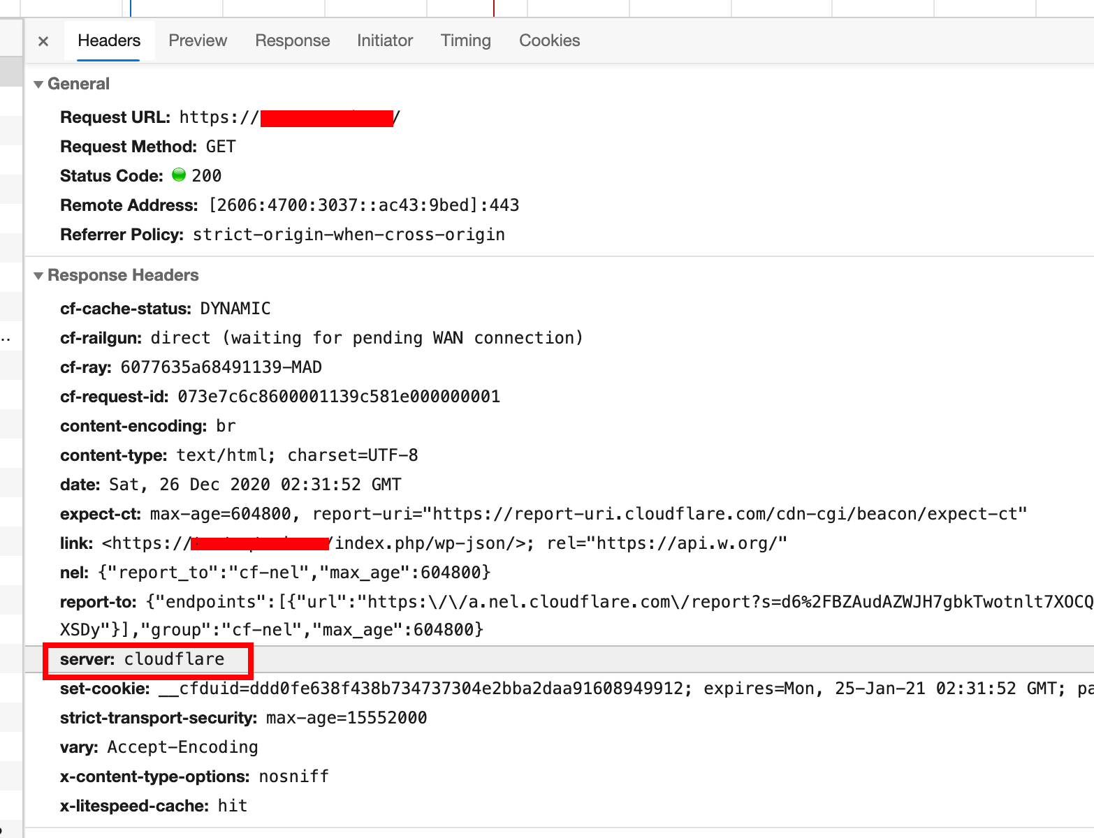 In the screenshot above, Cloudflare is masking the real server with a server: cloudflare header.